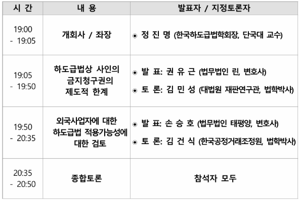 지난 2025년 11월 14일 금요일, 하도급 분야의 법적 쟁점을 논의하는 '한국하도급법학회 연구반' 세미나가 개최되었습니다. 이날 법무법인(유)린 공정거래팀의 권유근 변호사는 '하도급법상 사인의 금지청구권'에 대한 주제를 발표하였습니다.