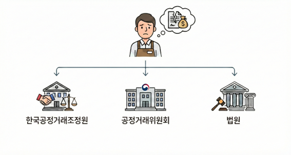 따라서 사안에 따라 이와 같은 주장을 하면서 한국공정거래조정원에 분쟁조정신청 또는 공정거래위원회에 신고를 할 수도 있습니다. 그러므로 이와 같은 일이 있다면 전문가와 상담을 받아보시기 바랍니다.
