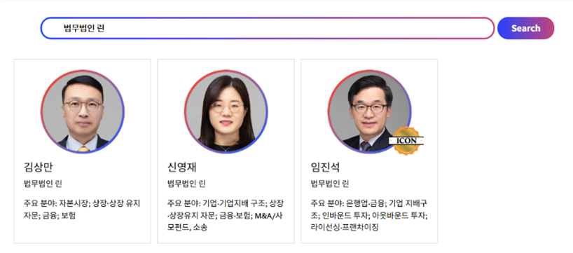 임진석 대표변호사, 김상만 변호사, 신영재 변호사는 각자의 전문 분야에서 탁월한 역량과 폭넓은 경험을 바탕으로 국내외 고객들로부터 높은 신뢰를 받고 있으며, 한국 법조계를 대표하는 변호사로 인정받았습니다. 이번 선정은 법무법인(유) 린이 국내는 물론 국제적으로도 경쟁력 있는 로펌으로 자리매김하고 있음을 보여주는 의미 있는 성과입니다.