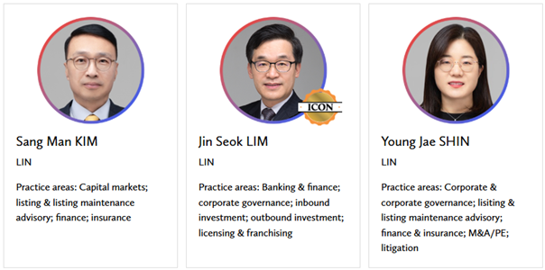 法務法人(有) 麟(LIN)(LIN LLC)では、イム・ジンソク代表弁護士、キム・サンマン弁護士、シン・ヨンジェ弁護士の3名が揃ってA-Listに名を連ねました。