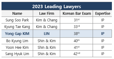Yong Gap Kim (Judicial Research and Training Institute of the Supreme Court of Korea, 28th) of Lin has once again proved to be a “standout” this year, being recognized as a Leading Lawyer in the “IP” category in the October issue of Legal Times' Leading Lawyers 2023, Special Issue.